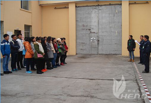 學生進廠區(qū)參觀前,車間主任以及安全科對學生進行安全知識的講解