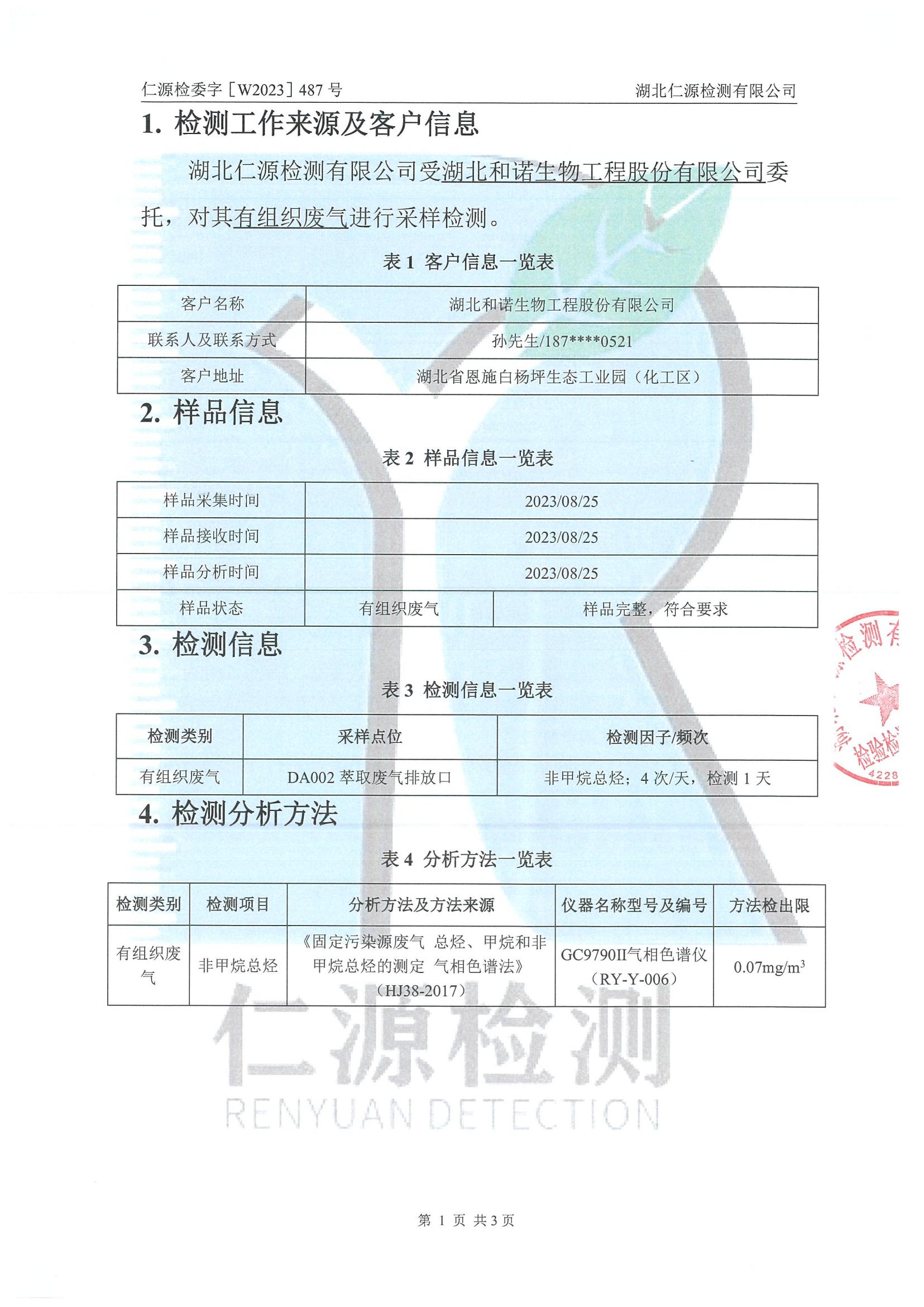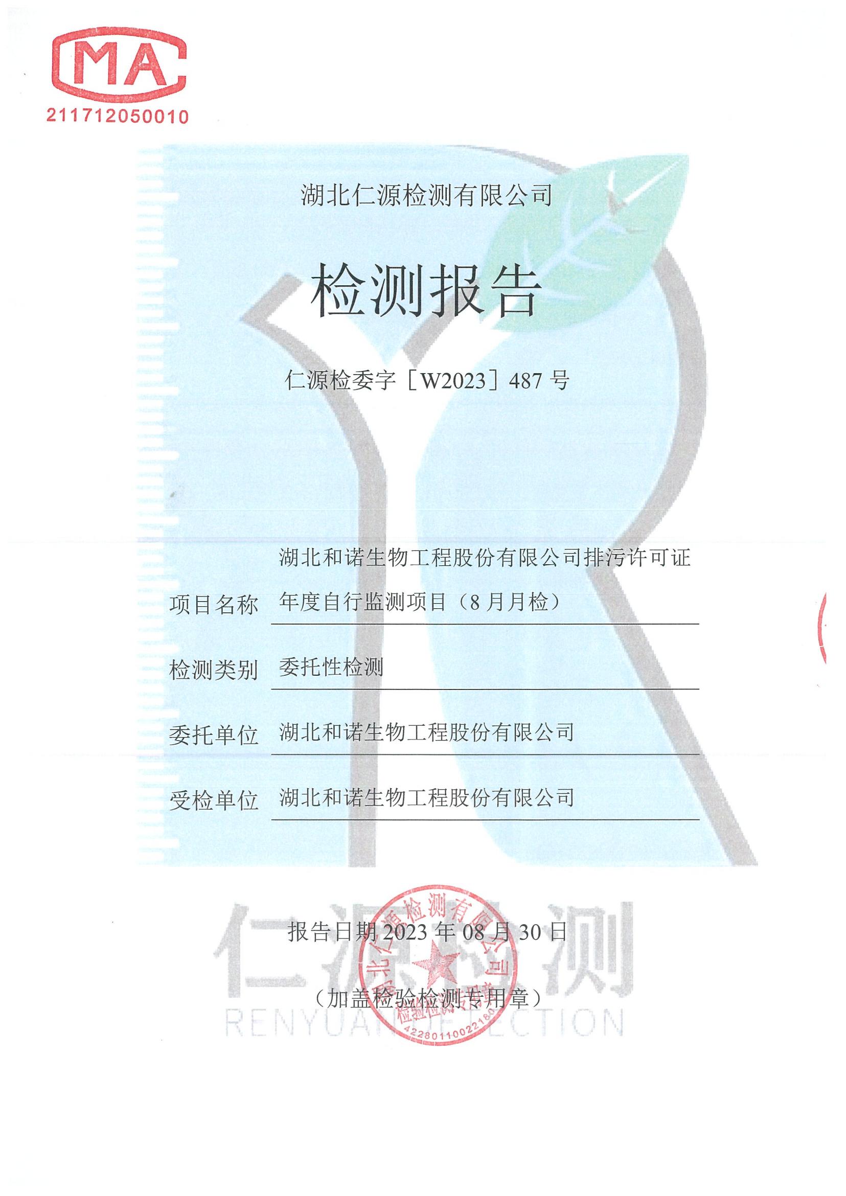 湖北和諾生物工程股份有限公司排污許可證年度自行監(jiān)測(cè)項(xiàng)目(8月月檢)增補(bǔ)報(bào)告公示