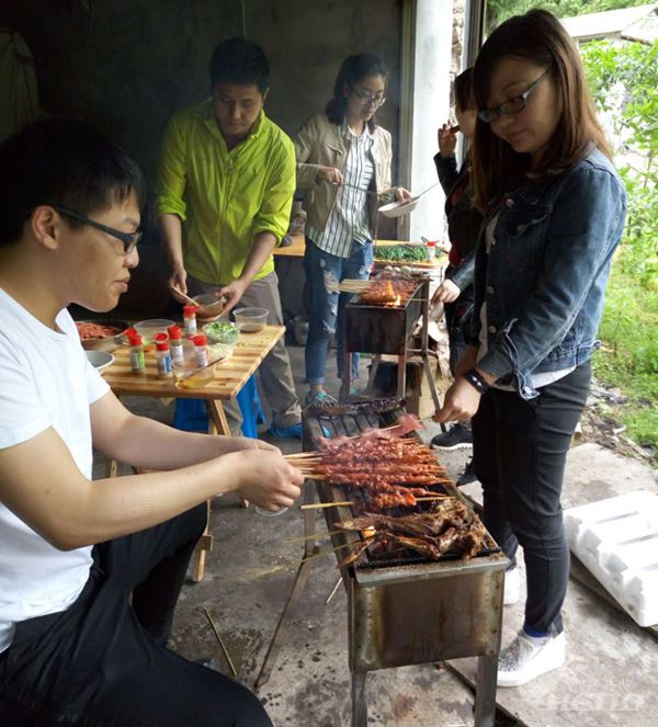 到達(dá)龍洞河之后大家馬上忙碌起來,有的負(fù)責(zé)洗菜,有的負(fù)責(zé)燒火,有的負(fù)責(zé)切菜,歡聲笑語回蕩在龍洞河的上空,原本冷清的人家立馬熱鬧起來。吃過飯菜、燒烤之后大家依然閑不住,因?yàn)橛旰蟮凝埗春訉?shí)在太美,從山間飛流而下的河水就像一條白色的蛟龍飛奔向前,河邊的人家白墻黑瓦,周圍環(huán)繞著綠水青山那情景真有小橋流水人家的愜意。太久沒有親近自然的我們看到這樣的情景就像脫韁的野馬不能自已。我們一起爬山、一起蕩秋千、一起找野菜,累了就回到河邊的人家和他們一起聊天,就這么靜靜地享受眼前的一切。